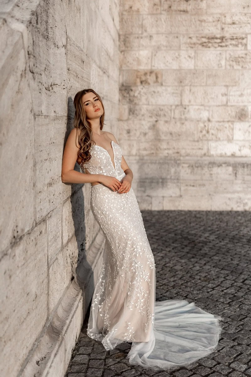 A magyar tervezői kollekció külön említést érdemel. Olyan nevek, mint Daalarna vagy Mira Zwillinger (külföldön is sikeres, magyar gyökerű tervező) kiváló minőségű, egyedi darabokat készítenek. Mellettük rengeteg kisebb hazai stúdió is dolgozik egyedi tervezésű menyasszonyi ruhákon, és egy menyasszony álmai sokszor pont egy ilyen kisebb műhelyben öltenek formát. A világmárkákhoz képest sokszor kedvezőbb áron juthatsz olyan ruhához, ami valóban a tied.
