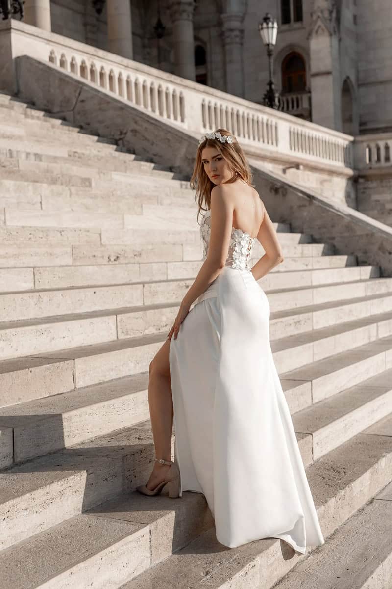 Ha valami trend, ami az utóbbi években felrobbantotta az esküvői világot, az a kétrészes menyasszonyi ruha. A felső és a szoknya külön darab, így rugalmasabb, variálhatóbb, és lényegesen kényelmesebb is.