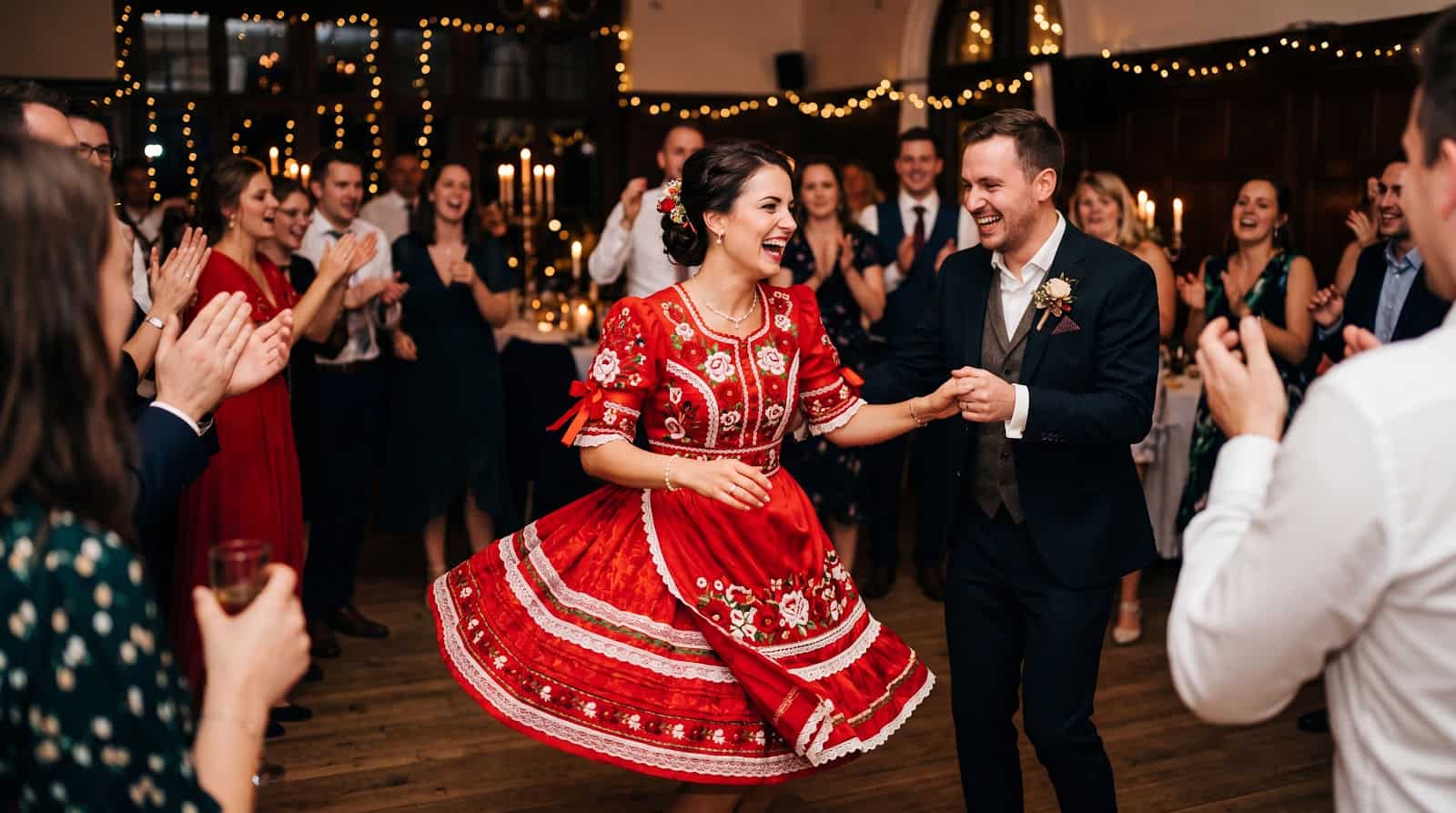 A piros az ősi magyar kultúrában a termékenység, az életerő és az új kezdet színe volt. A pirosba öltözött fiatalasszonyt a férje és a vendégek a menyecsketáncon át fogaDJák be a felnőtt asszonyok körébe. Ez a szín a múltból azt üzeni, hogy ettől a pillanattól már nem menyasszony, hanem feleség.